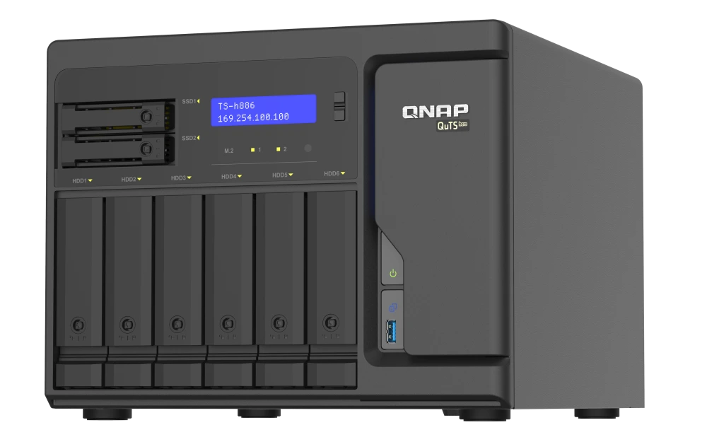 El QNAP TS-H886-D1602-8G-US es un NAS torre profesional de 8 bahías diseñado para entornos empresariales exigentes. Incorpora el sistema operativo QuTS hero basado en ZFS, que garantiza integridad de datos, deduplicación en línea y rendimiento superior. Con procesador Intel Xeon D y memoria expandible, ofrece potencia para virtualización, copias de seguridad, y cargas de trabajo intensivas.